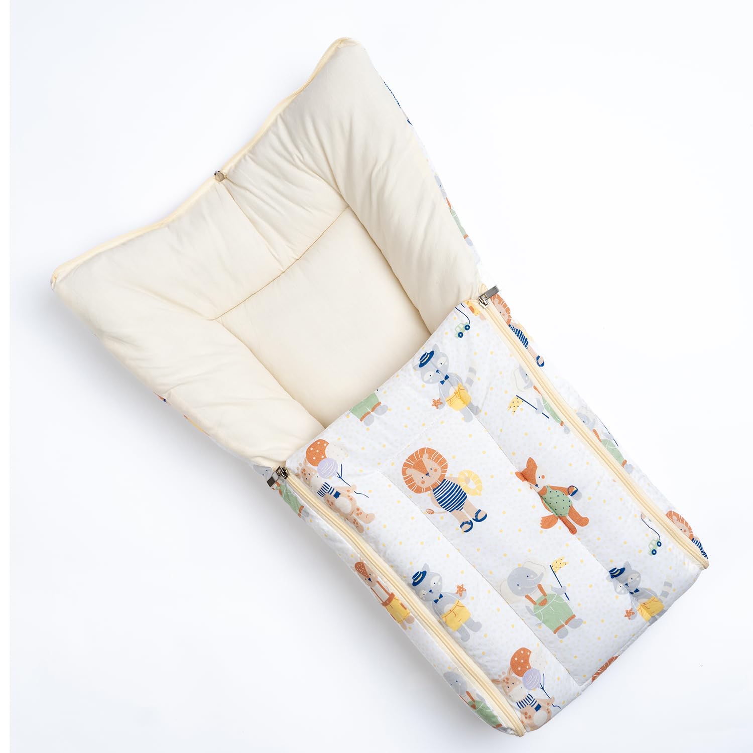 SOFT FABRIC: Our baby sleeping bag carrier nests are made of a cotton poplin outer layer with a polyfibre filling providing utmost comfort on the go. The breathability of the cotton poplin layer ensures that there’s enough air flow and the baby’s body temperature is maintained at all times.