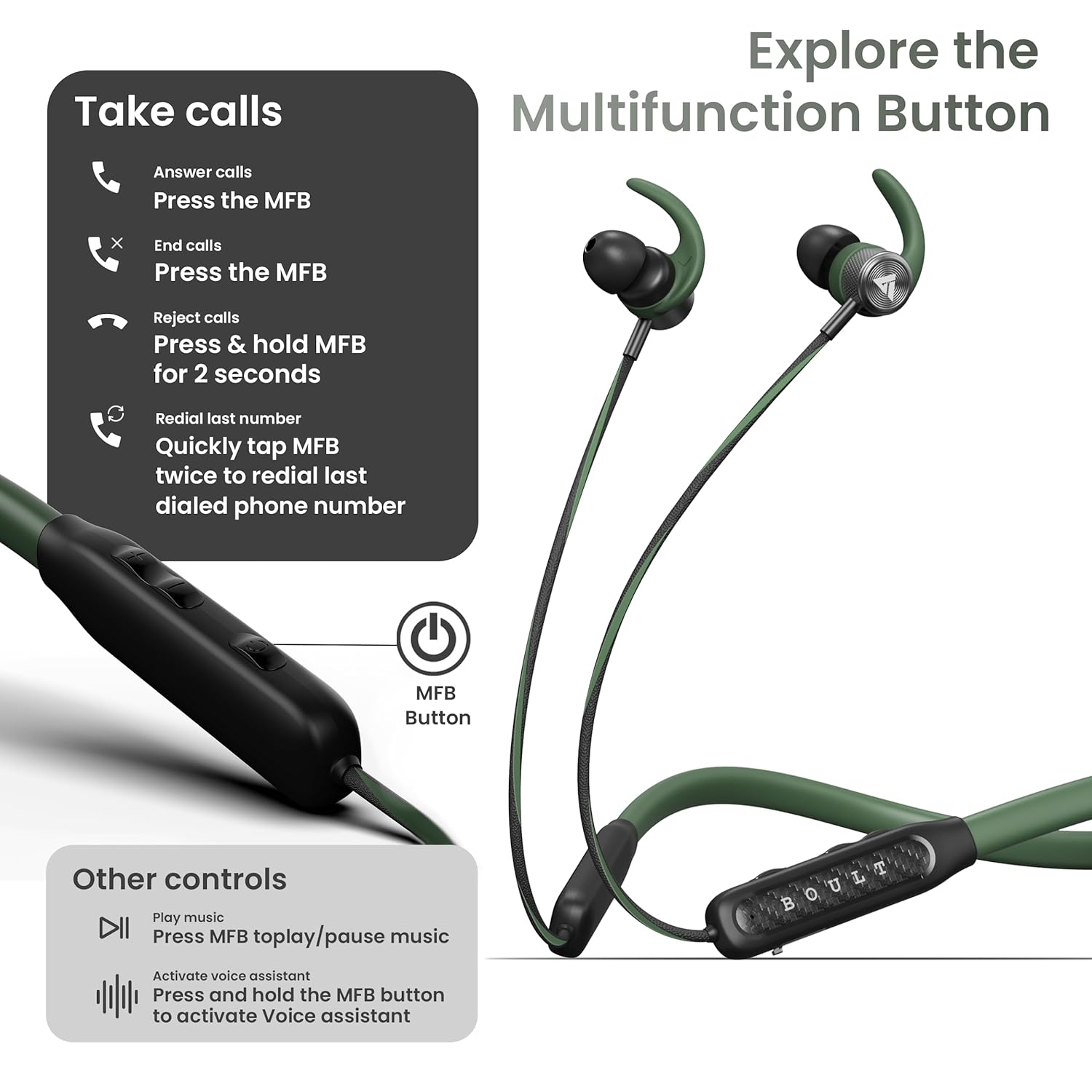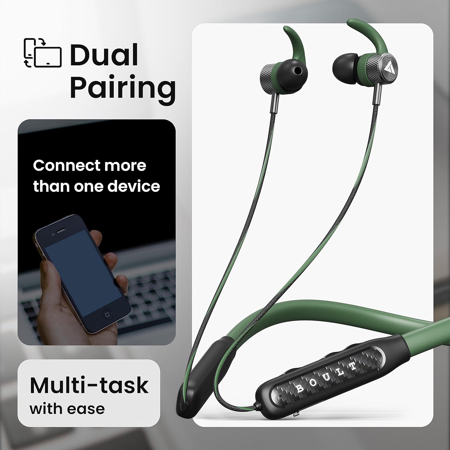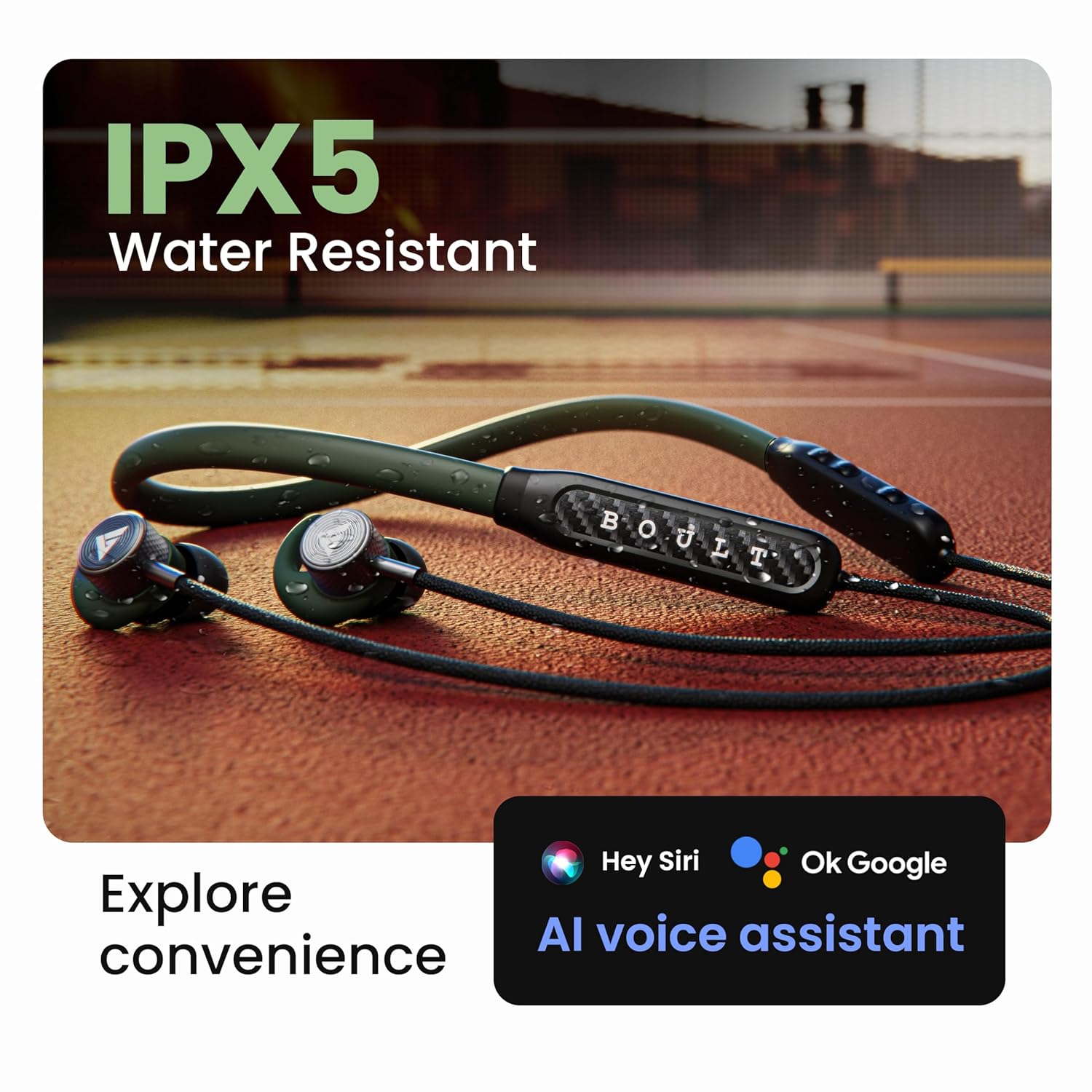 - Sweat Resistant: The Boult RCharge wireless earphones feature IPX5 water resistance, ensuring protection from splashes and spills, making them your perfect companion for workouts, outdoor adventures, and daily commutes.
