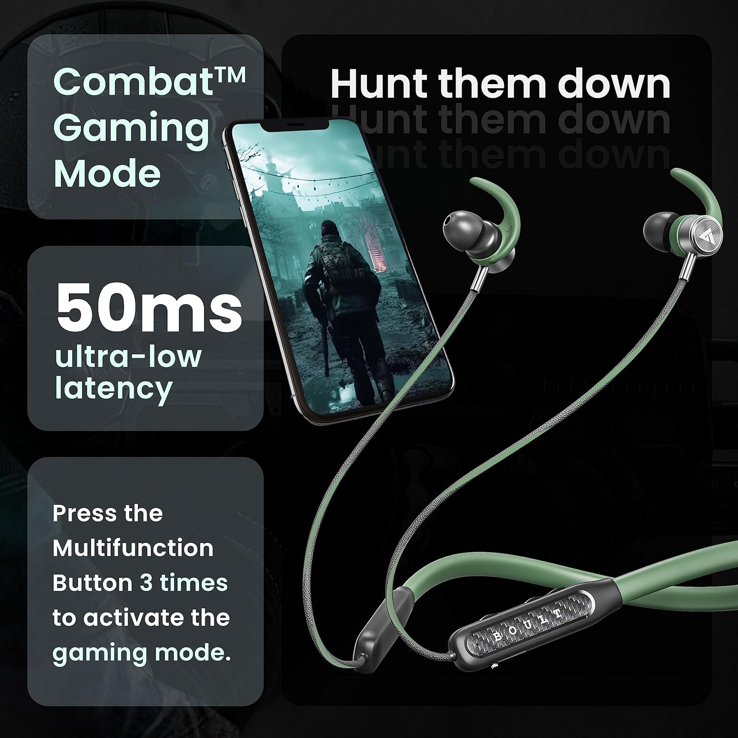 Boult Audio RCharge Wireless in Ear Bluetooth Earphones with ENC Mic, 30H Playtime, 50ms Low Latency Gaming Mode, Dual Pairing, Type-C Fast Charging (10Min=12Hrs), 10mm Bass Drivers Neckband (Green)