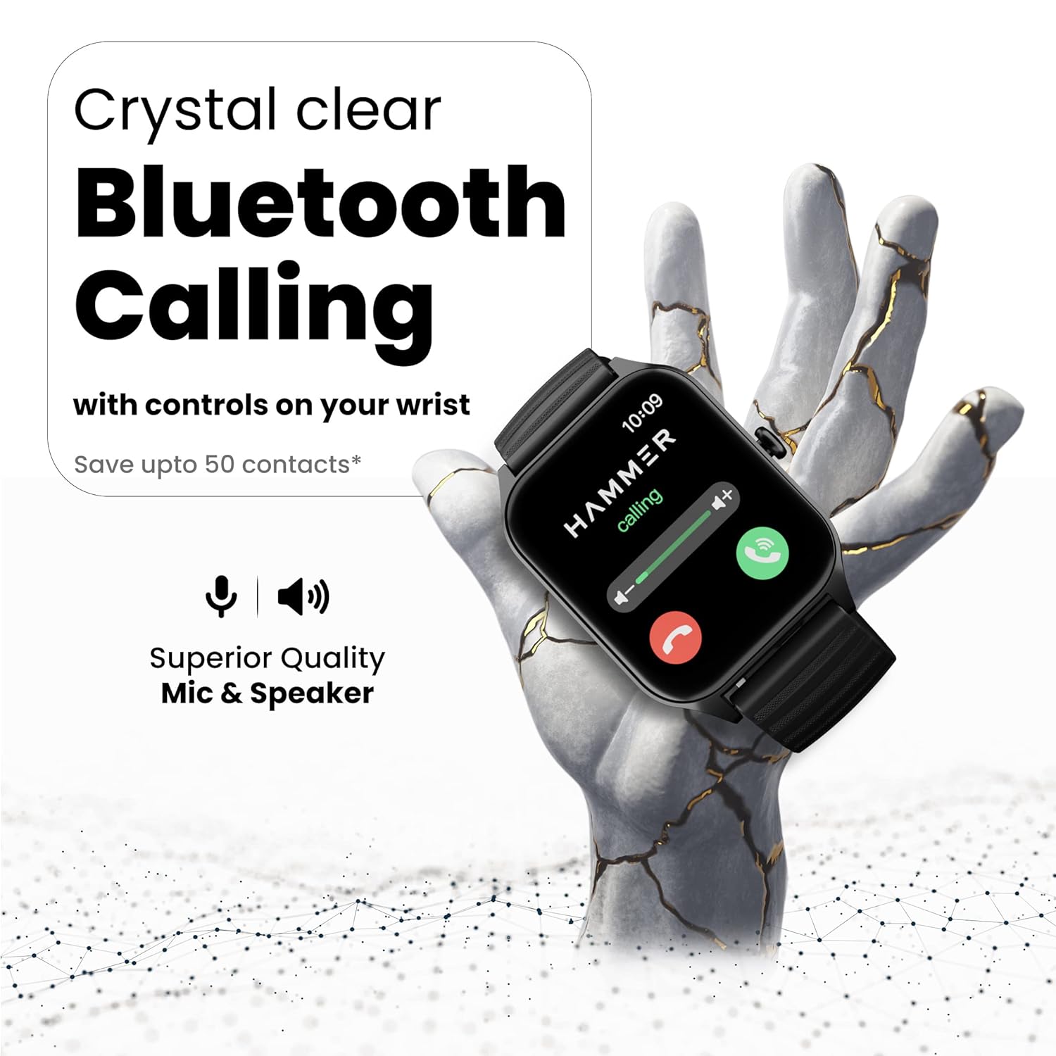 - Skin Friendly Strap Material & Full Metallic Body: Hammer Stroke comes with metallic alloy body and skinfriendly silicon strap, this calling smart watch is a premium choice, that truly makes all your looks comfy and fashionable