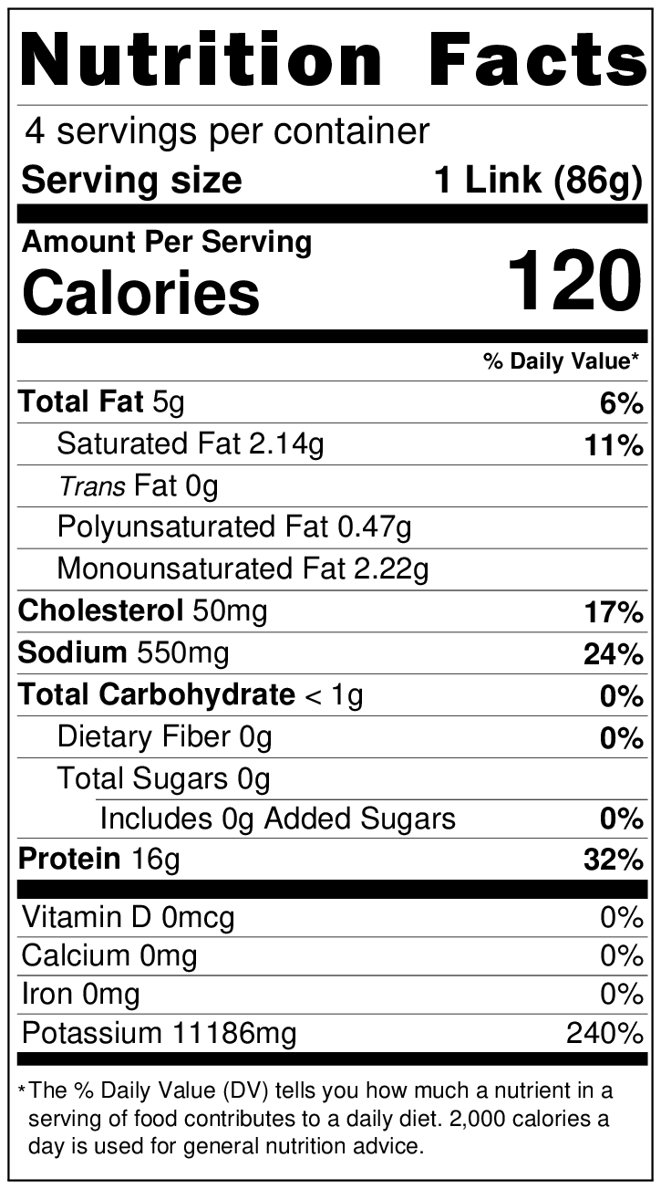 All natural lamb seasoned with garlic, shallots, and cilantro. We don't use any black or white pepper in this recipe, so it has tons of flavour and zero heat.