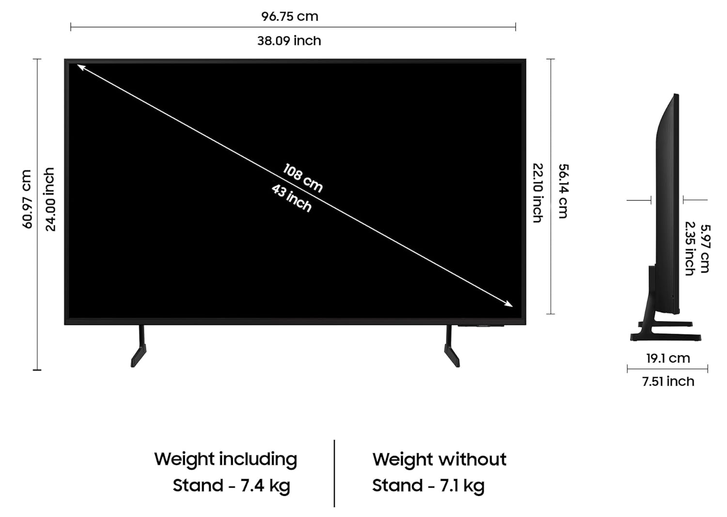 - Connectivity : 3 Hdmi Ports For Seamless Connectivity With External Devices | 1 X Usb-A Usb Ports To Connect Hard Drives Or Other Usb Devices |Wi-Fi | Bluetooth | Anynet+ (Hdmi-Cec)| Ethernet (Lan) Port| Rf In (Terrestrial / Cable Input / Satellite Input)