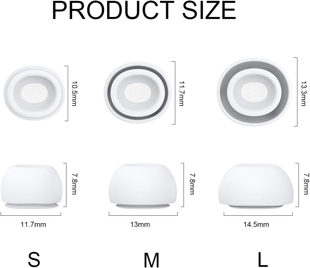 Sounce Silicone Replacement Ear Tips for Apple AirPods Pro 2 & Airpods Pro, Anti-Slip Eartips, Tighter Seal, Fits in The Charging Case, All 3 Sizes inclued (Small+Medium+Large) (3 Sets, 6Pc) - White