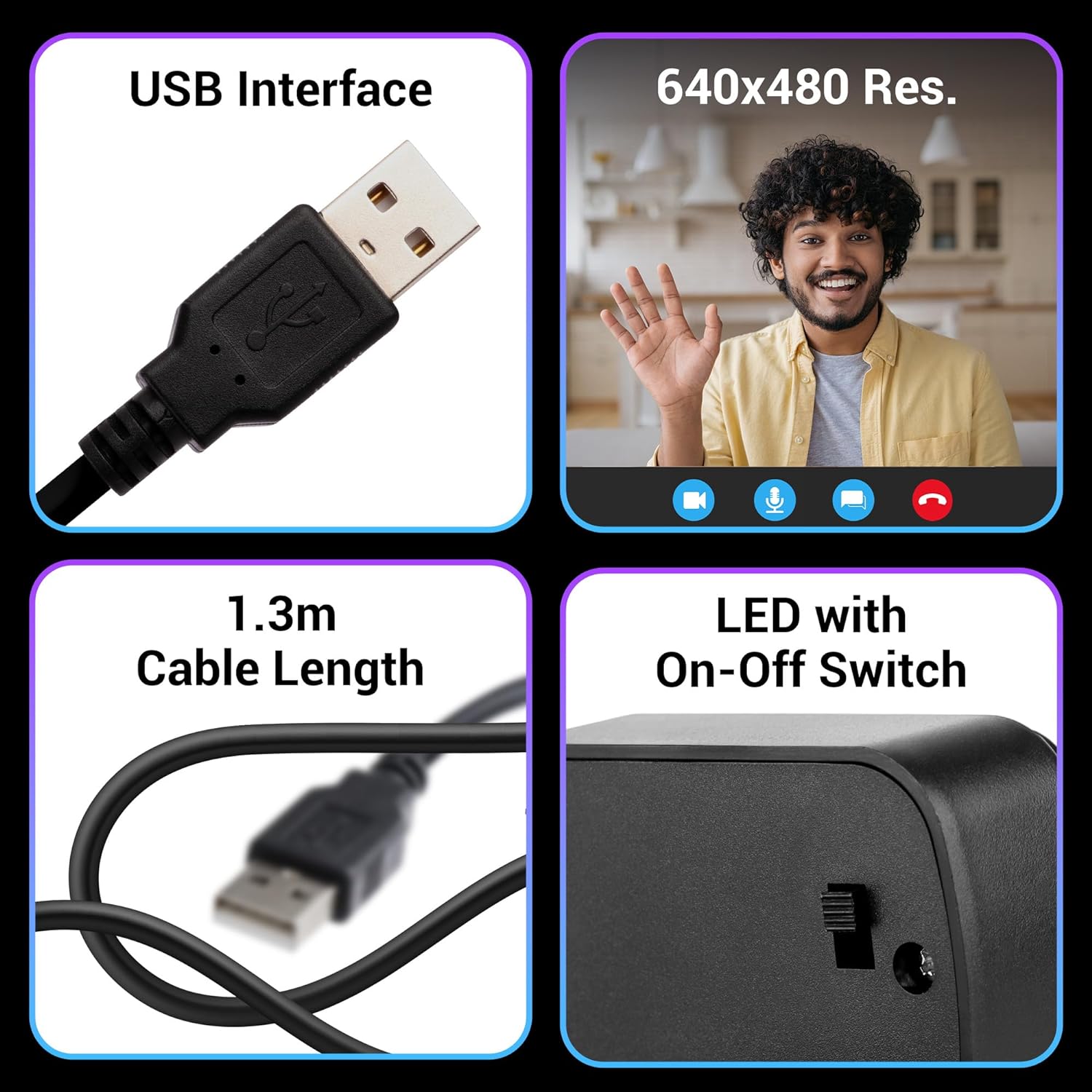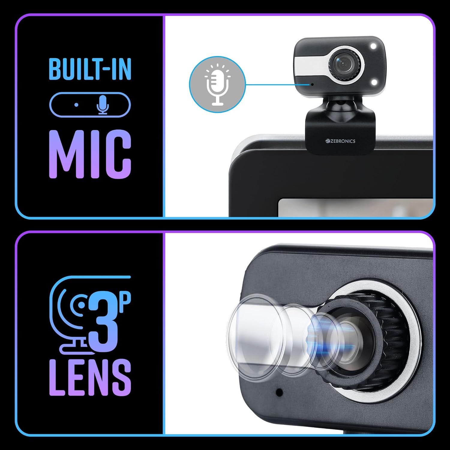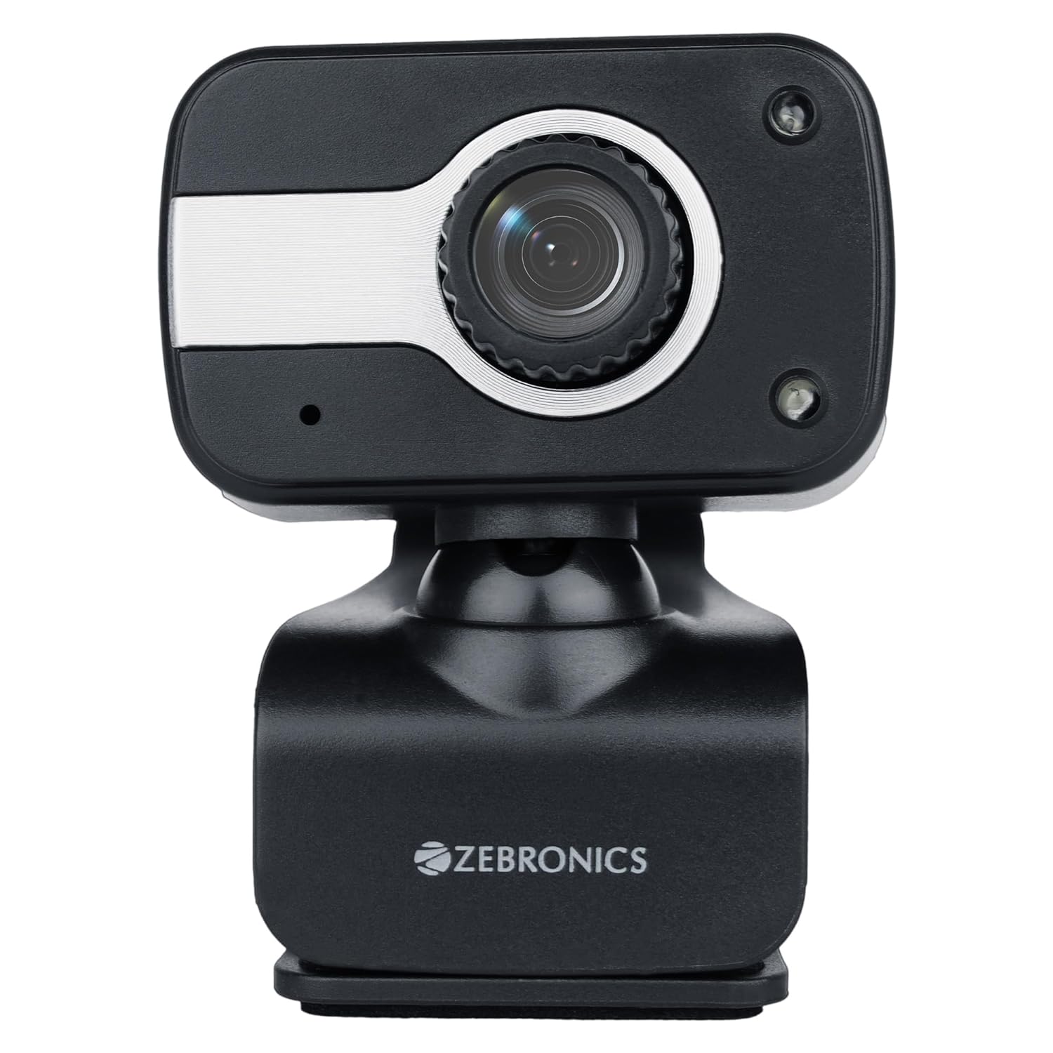 ZEBRONICS Zeb-Crystal Clear Web Camera with 3P Lens,Built-in Microphone,Auto White Balance,Night Vision and Manual Switch for LED (Black)