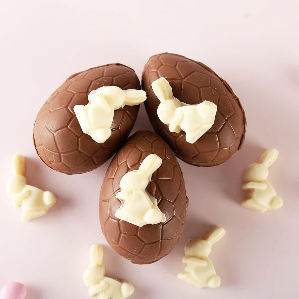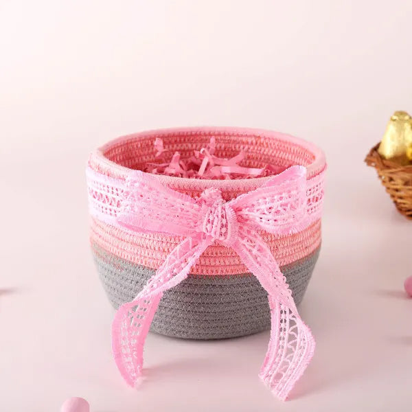 No bunny goes hungry with this sweet Easter gift basket. This pink and gray basket with a pink ribbon bow is loaded with a cute bunny soft toy and three milk easter egg chocolates. Also, enjoy four white chocolates in a bunny shape along with the basket.