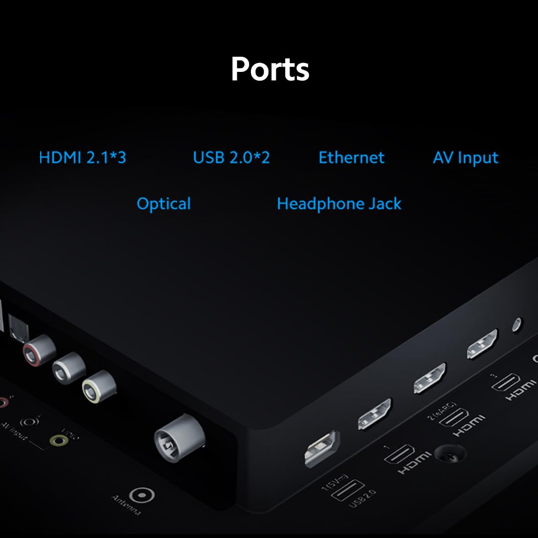 • Connectivity: Dual Band Wi-Fi | Connectivity: 3 HDMI ports to connect set top box, Blu-ray speakers or gaming console | 2 USB ports to connect hard drives or other USB devices| Optical port| AV port| Ethernet port | 3.5 mm jack | Bluetooth 5.0